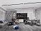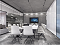 纯白色调显得环境更清新,空间质感大幅度提升。落地玻璃窗的采光效果将自然光线引进室内,加强整体空间通透感,烘托出明朗的格调。细长简约的黑色吊灯平衡着宽旷的空间感,给人呈现出办公室装修沉稳放松的氛围。