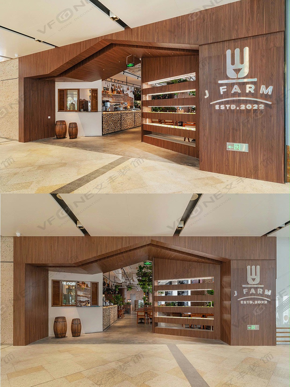 西餐厅这样设计,入座率超高!这是我们新设计的西餐厅,面积600平,我们以消费者需求和餐厅定位出发,空间布局上我们采用了半封闭式的设计手法,在有限的空间内为消费者保留一定的社交隐私,同时保留餐厅完整动线。为了凸显氛围感,西餐厅的材质以木色水磨石和原木色木饰面为主,同时用深棕色的木饰面和绿色绿植点缀空间,让空间更具复古和自然的感觉。门头则采用了抽象造型设计,增加餐厅神秘创意氛围,凸显周边商店门头差异化。对于消费者而言,吃西餐是一件很有仪式感的事情,所以想要提高餐厅的入座率,不仅菜品口味要好,餐厅还需要满足消费者的情感、仪式感和社交氛围。